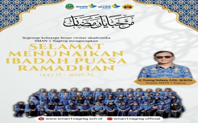 Bravo SMANSANSegenap keluarga besar civitas akademika SMA Negeri 1 Nagreg mengucapkan selamat menunaikan ibadah puasa 1447 H. Semoga setiap amal ibadah kita di bulan yang mulia ini diterima oleh Allah subḥānahu wataʿālā.